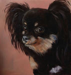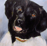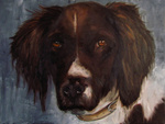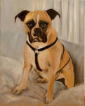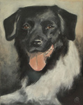 2017Onze hond Rixt, geschilderd op oude planken.